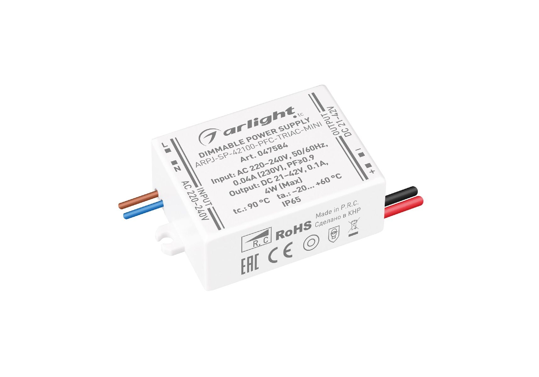 Блок питания Arlight ARPJ-SP-42100-PFC-TRIAC-MINI (4W, 21-42V, 100mA) 047584