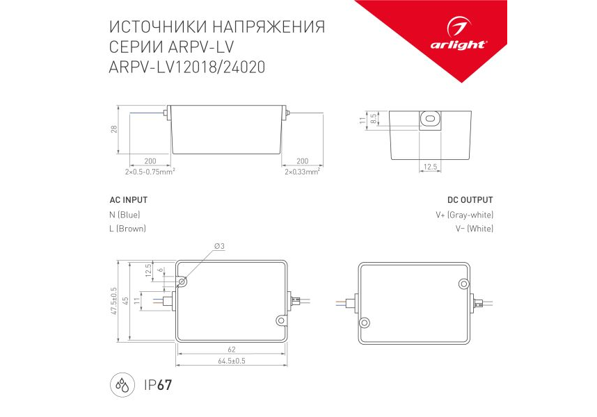 Блок питания Arlight ARPV-LV12020 24V 20W IP67 0,83A 033329