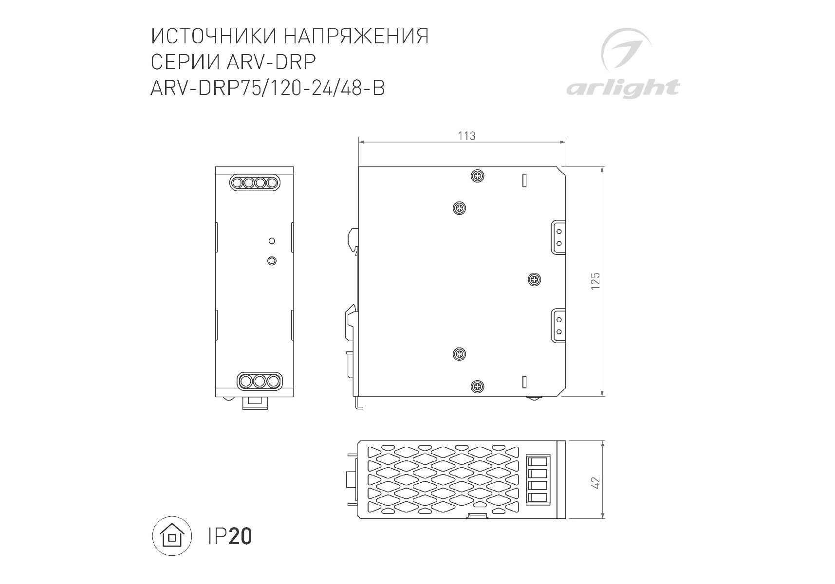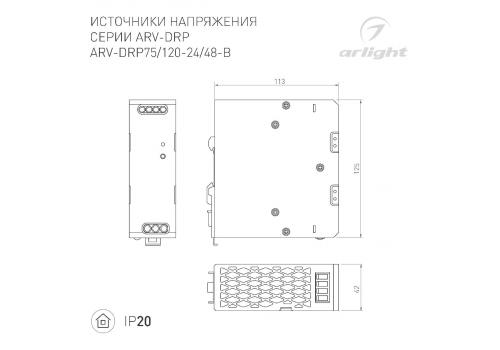 Блок питания Arlight ARV-DRP75-48 (48V, 1.6A, 75W) 052805