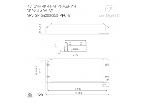 Блок питания Arlight ARV-SP-24250-PFC-B (24V, 10.4A, 250W, IP20) 022923(2)