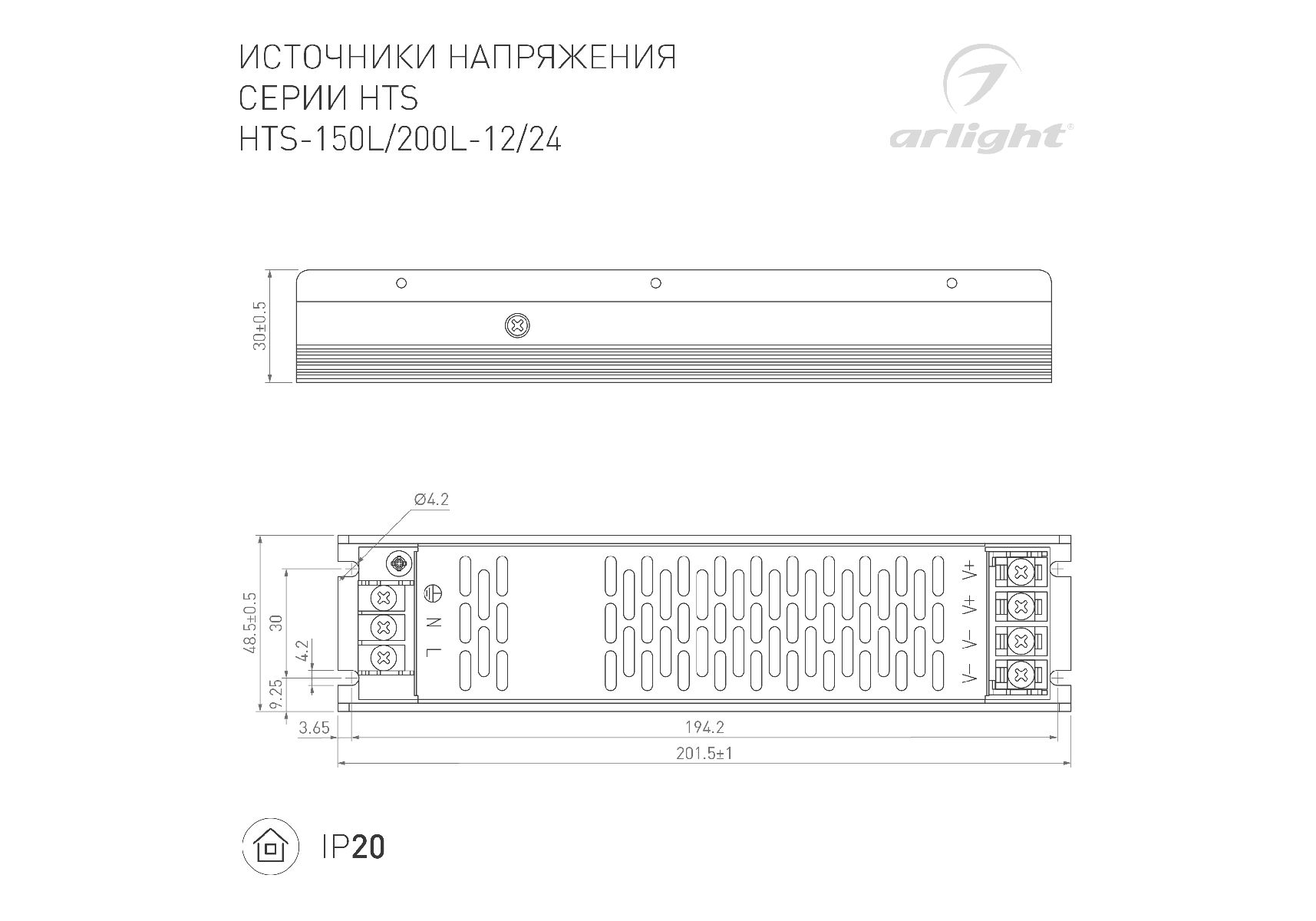 Блок питания Arlight HTS-200L-24 (24V, 8.3A, 200W) 020827(1)