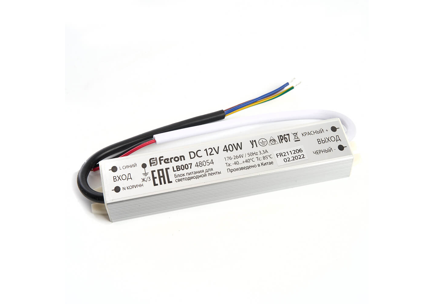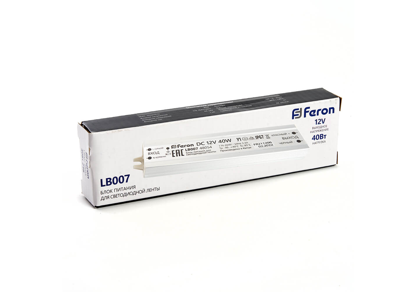 Блок питания для светодиодной ленты Feron LB007 12V 40W IP67 3,3A 48054