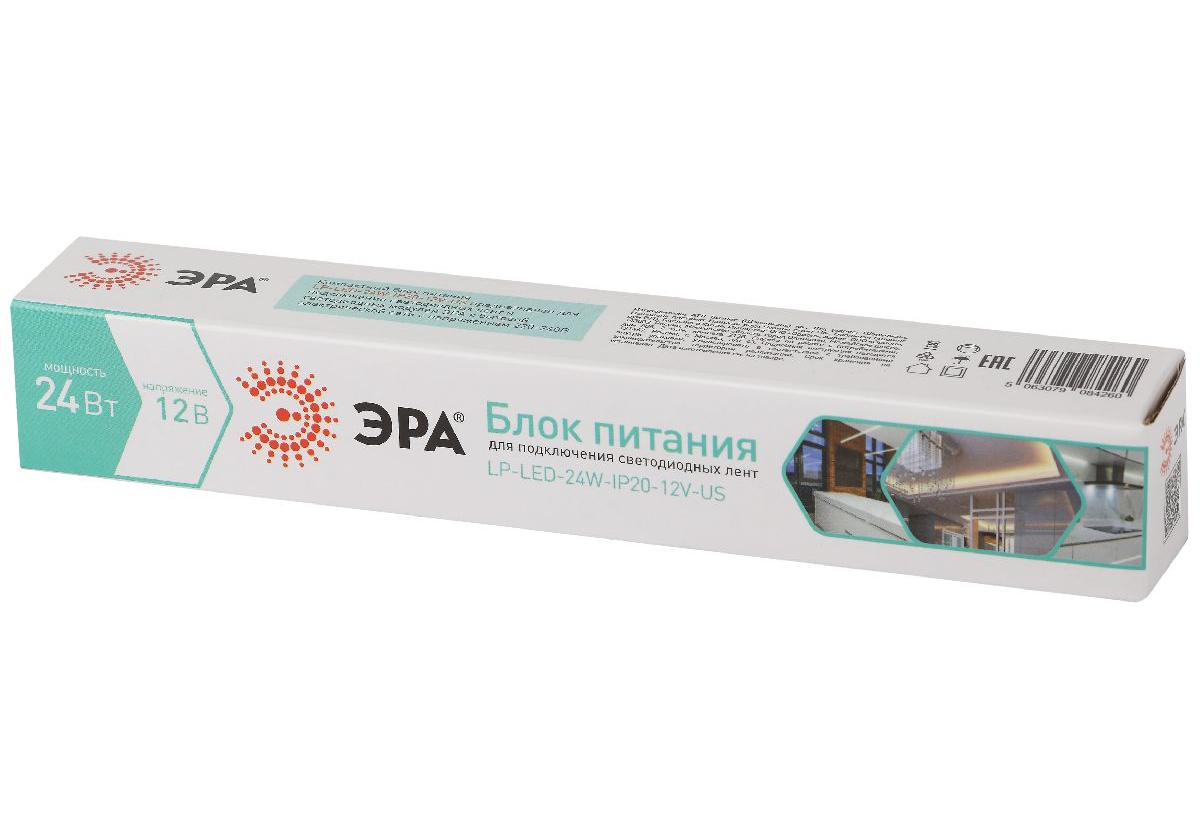 Блок питания Эра 24Вт DC12В 2A IP20 LP-LED-24W-IP20-12V-US Б0061150