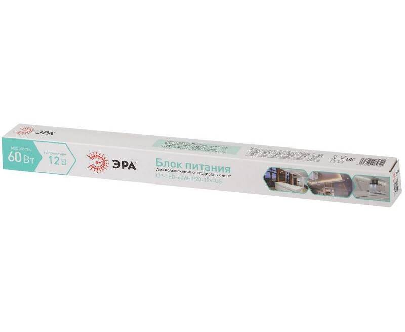 Блок питания Эра 60Вт DC12В 5A IP20 LP-LED-60W-IP20-12V-US Б0061153