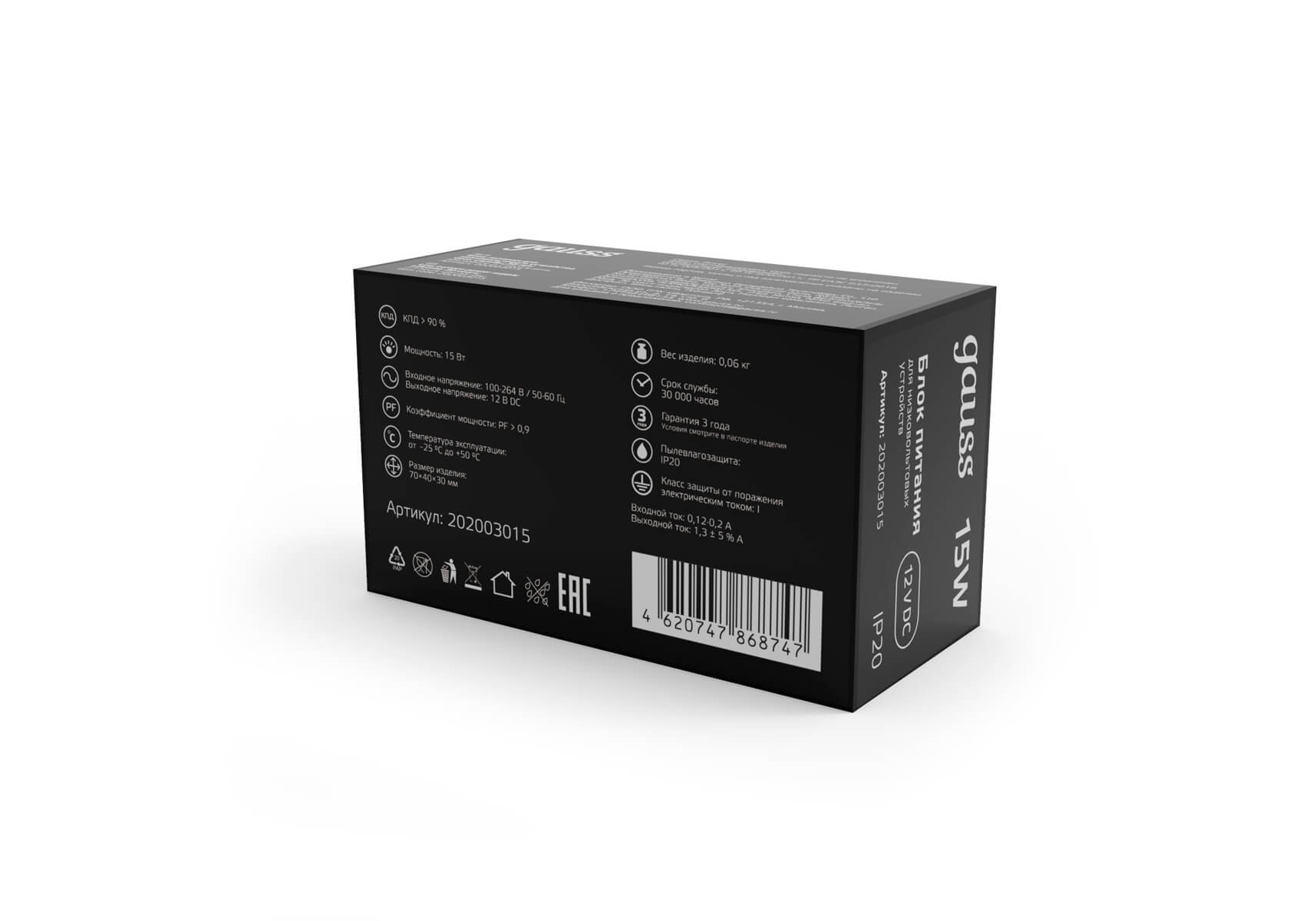 Блок питания Gauss Led Strip PS 12V 15W IP20 2A 202003015