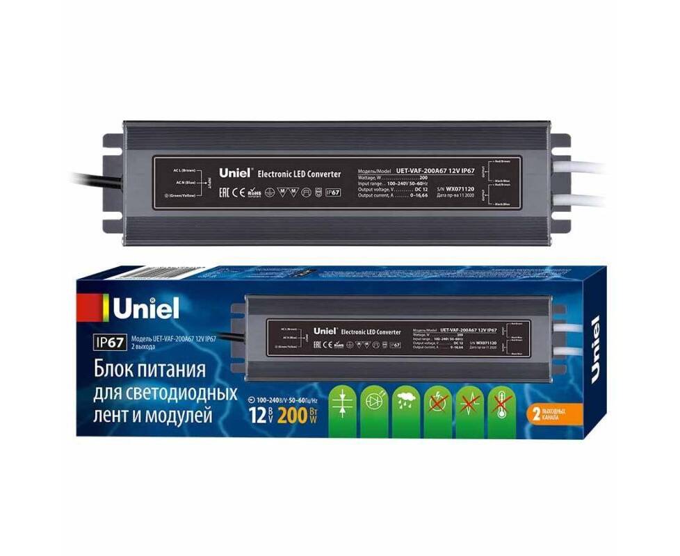 Блок питания Uniel 12V 200W IP67 16,7A UET-VAF-200A67 12V IP67 UL-00007579