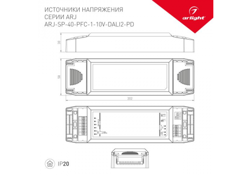 Драйвер Arlight ARJ-SP-40-PFC-1-10V-Dali2-PD 9-57V 40W IP20 0,7-1,2A 025125(1)