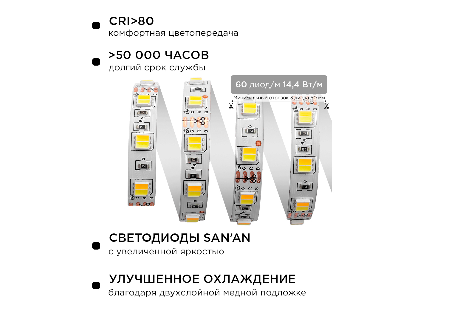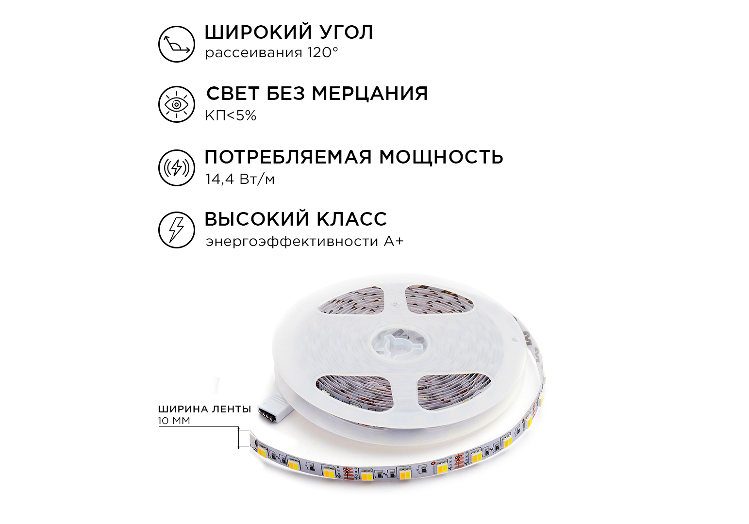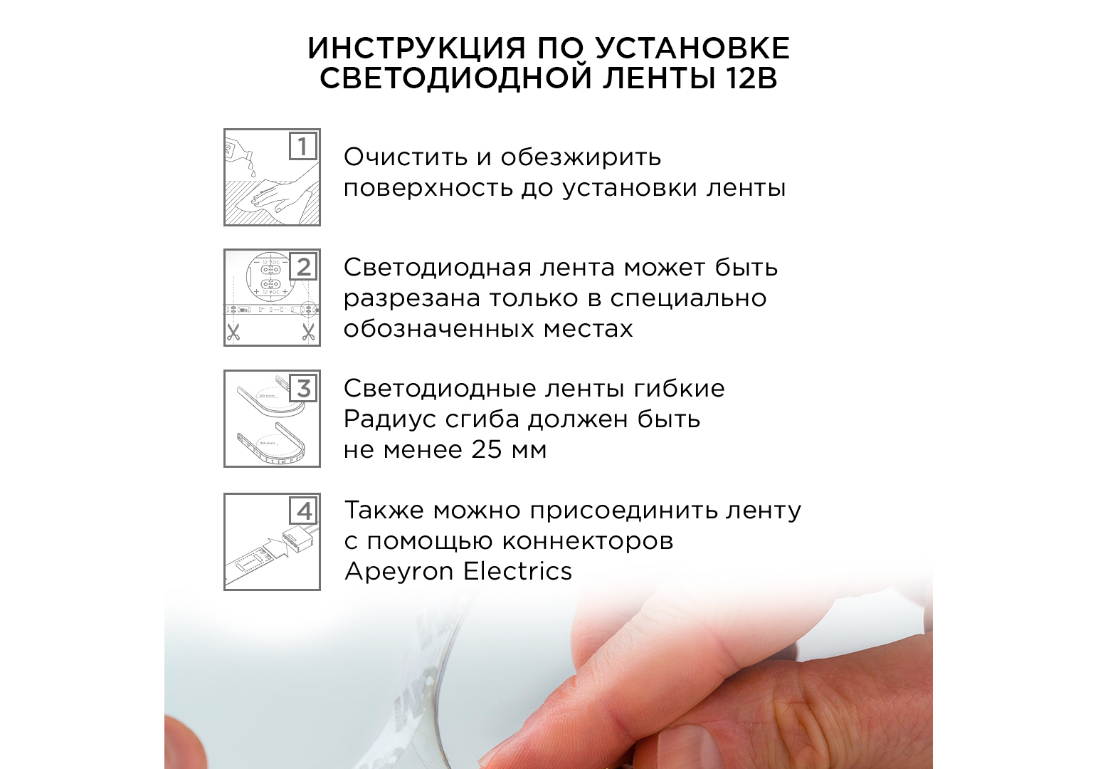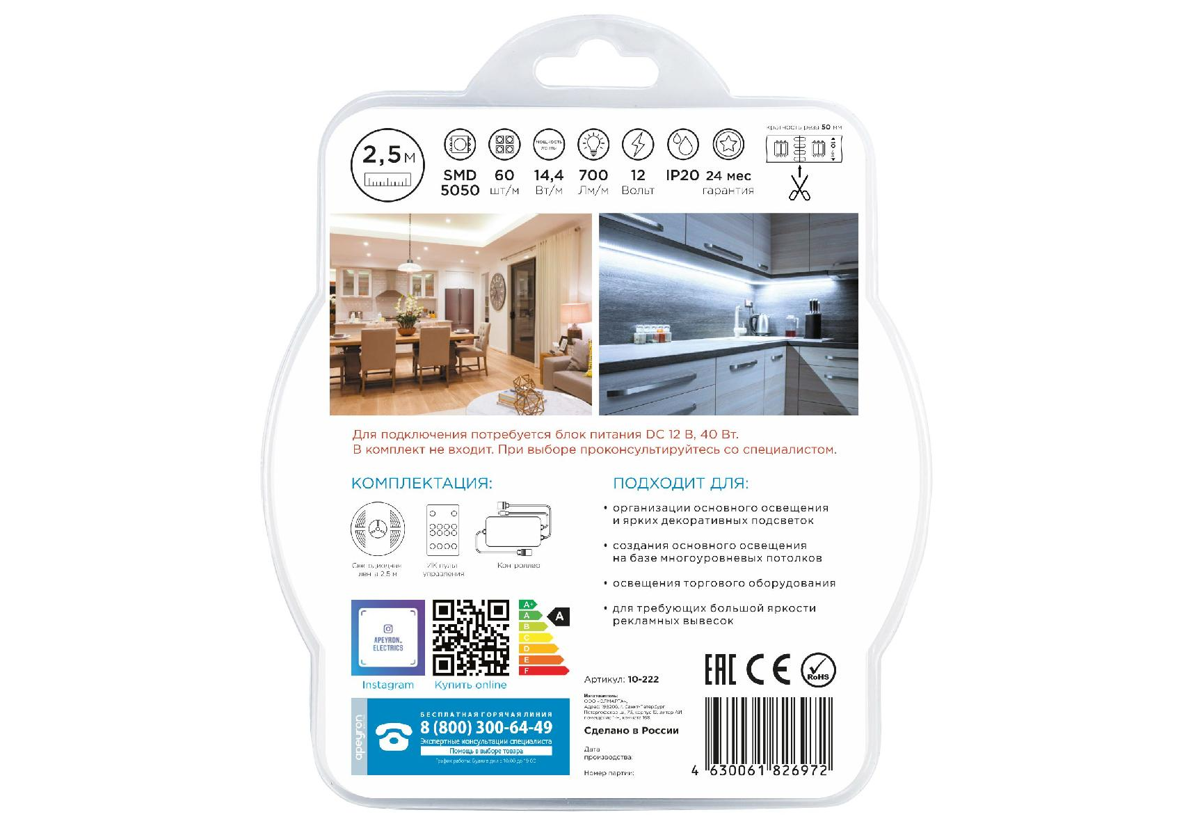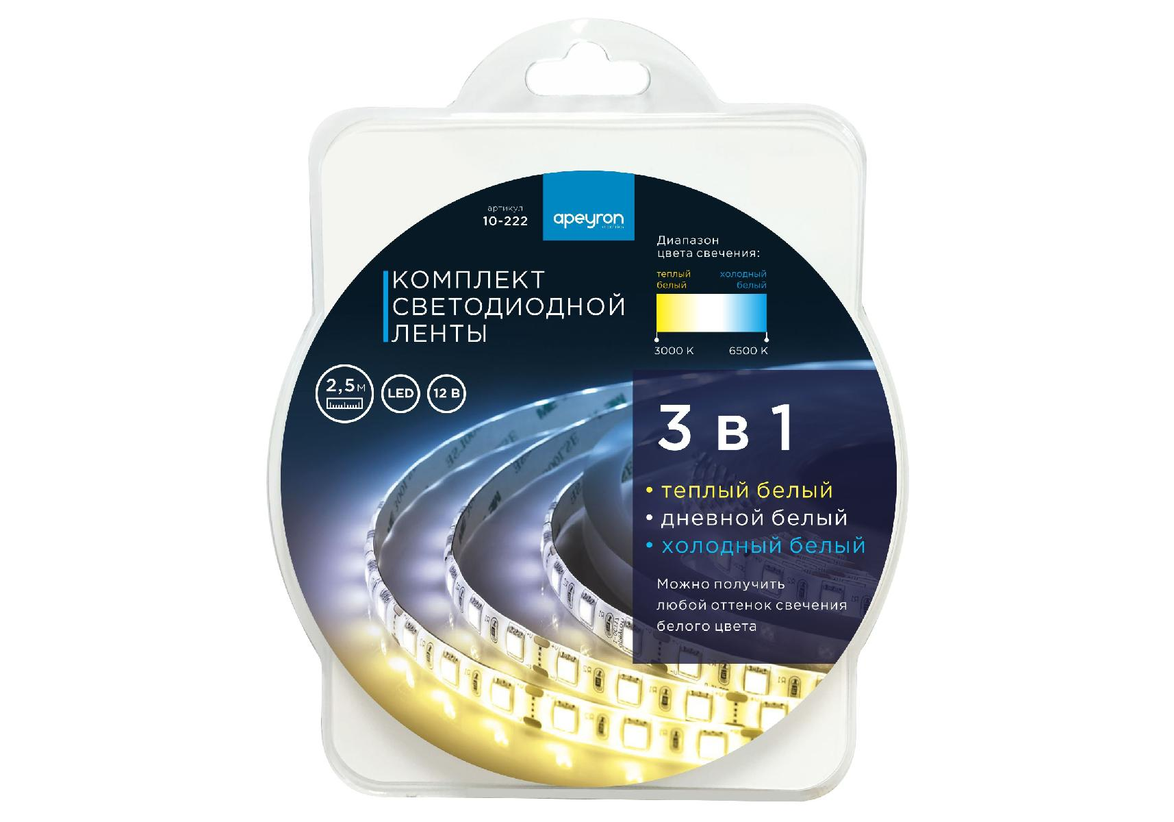 Комплект светодиодной ленты Apeyron 12В 14,4Вт/м smd5050 60д/м IP20 700Лм/м 2,5м 3000К+6500К (коннек