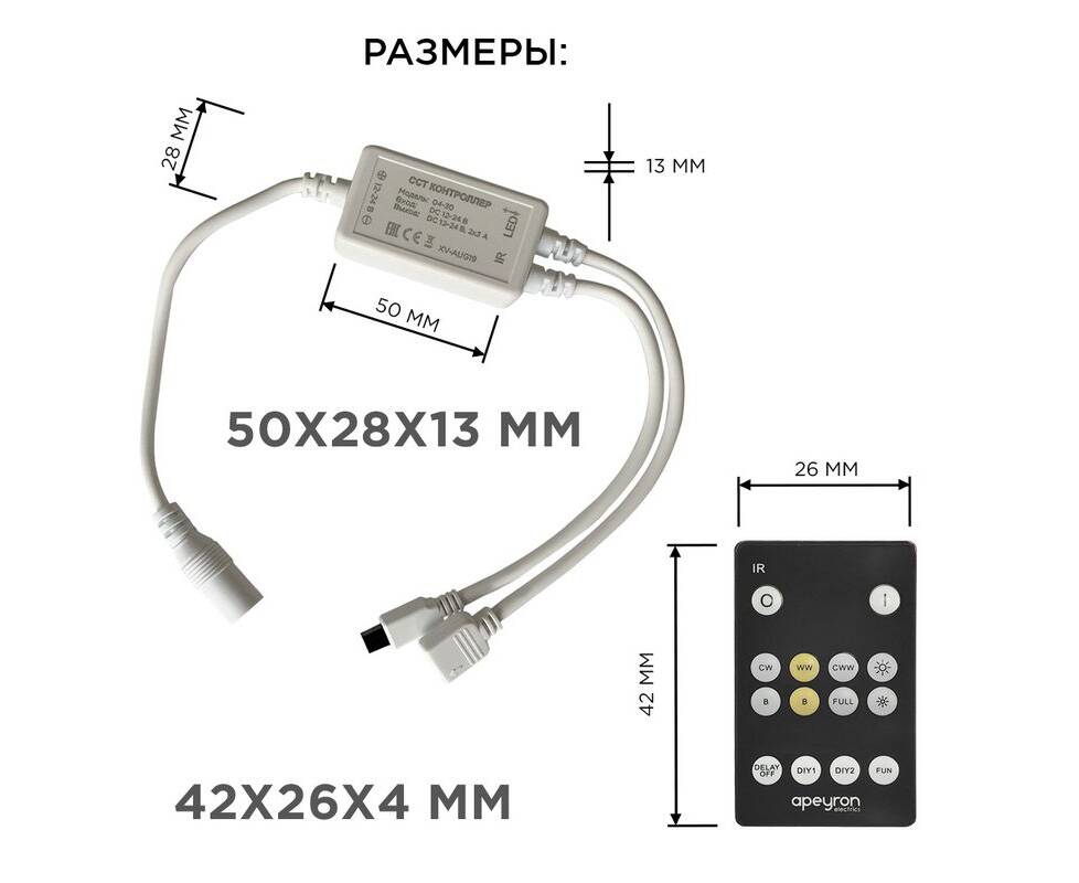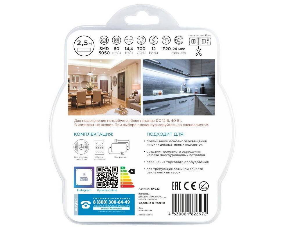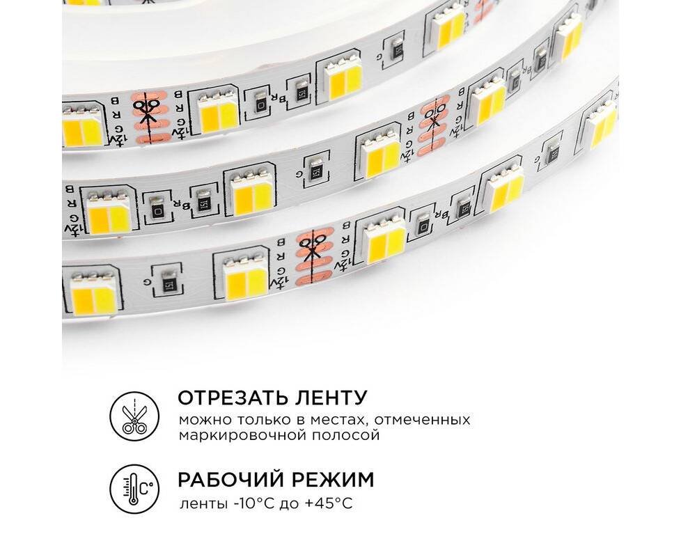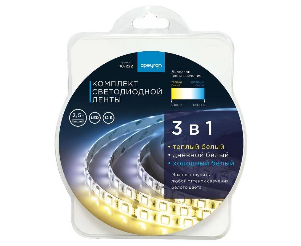 Комплект светодиодной ленты Apeyron 12В 14,4Вт/м smd5050 60д/м IP20 700Лм/м 2,5м 3000К+6500К (коннек