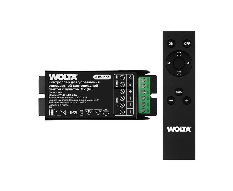 Контроллер 3-канальный для одноцветной светодиодной ленты 12-24В, 24А с пультом RF WOLTA WLC-C/04-24