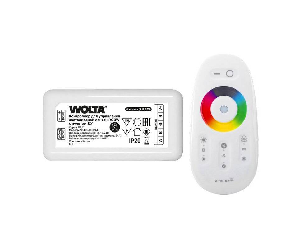 Контроллер 4-канальный для светодиодной ленты RGBW 12-24В, 24А с пультом RF2.4ГГц WOLTA WLC-C/08-24A