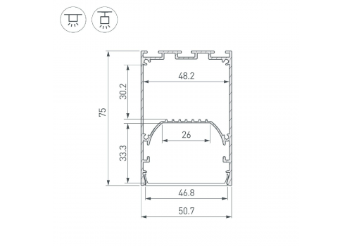 Алюминиевый профиль Arlight LINE-S-5075-2000 BLACK 041847