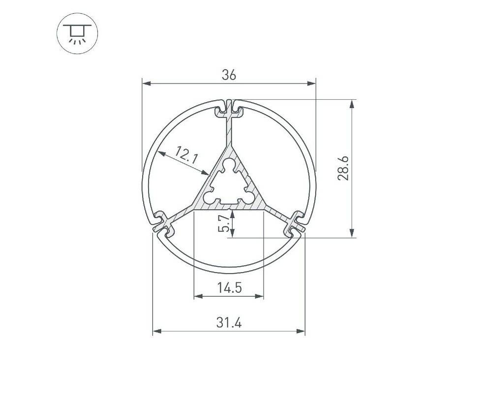 Алюминиевый профиль Arlight ROUND-D36-360-2500 ANOD BLACK 050250