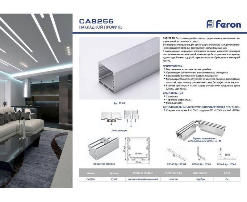 Профиль алюминиевый накладной "Линии света" Feron CAB256 10367