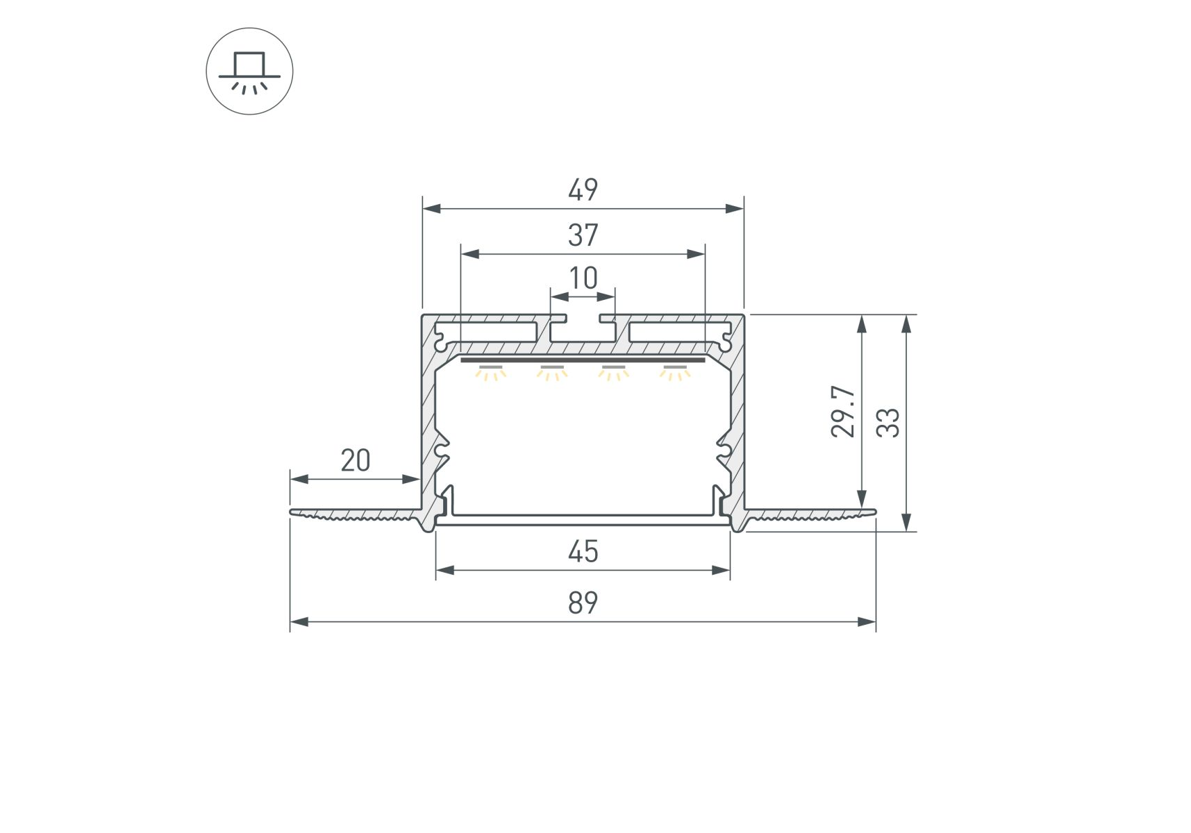 Профиль для гкл Arlight LINIA45-FANTOM-2000 ANOD (Алюминий) 059412