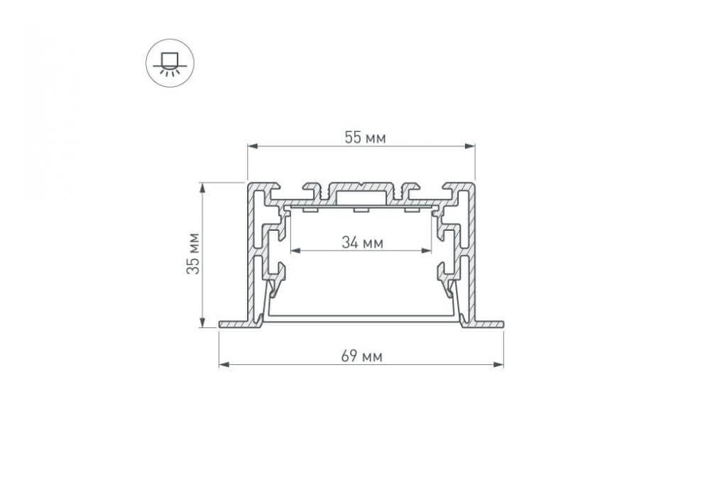 Профиль с рассеивателем Arlight S2-LINIA69-F-2500 ANOD+OPAL 021177