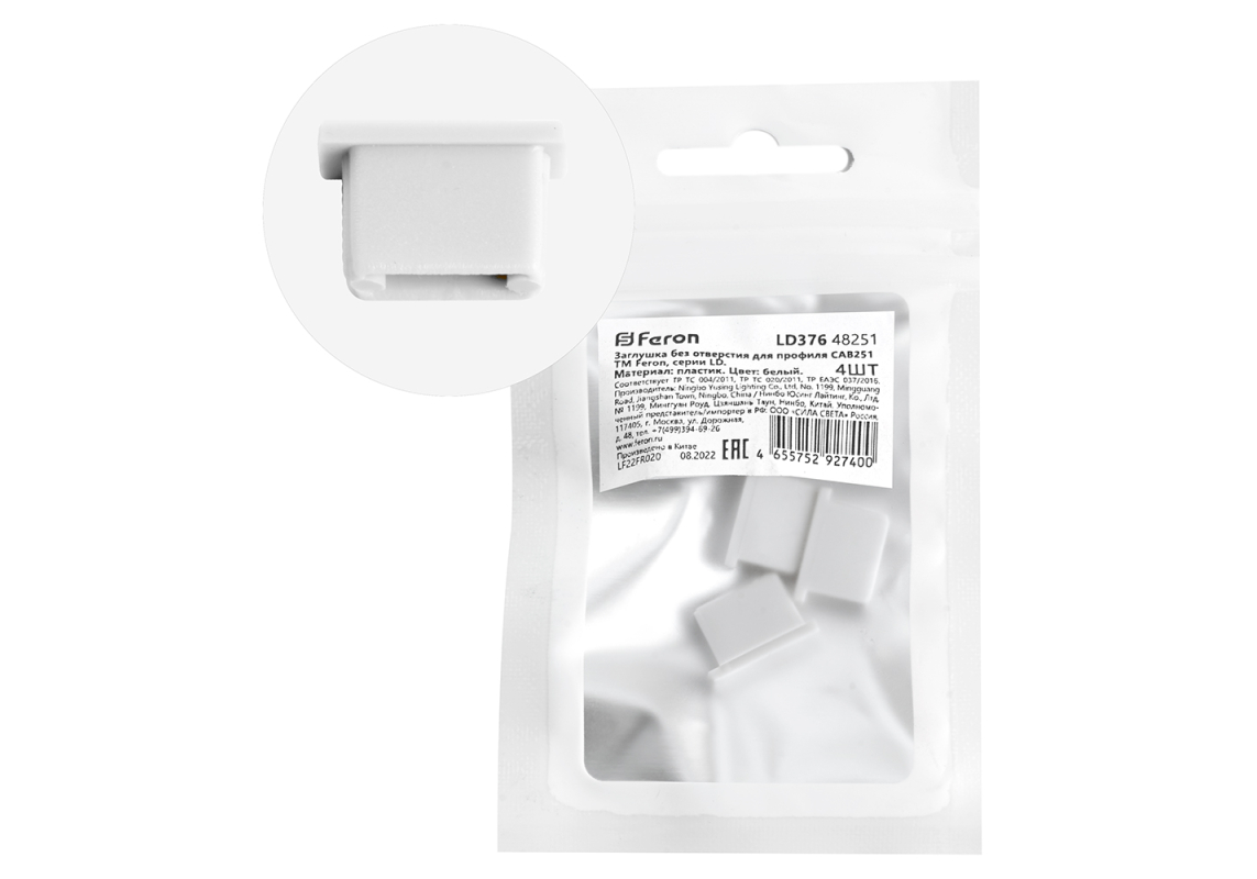 Заглушка без отверстия для профиля CAB251 (комплект 4шт) Feron LD376 48251