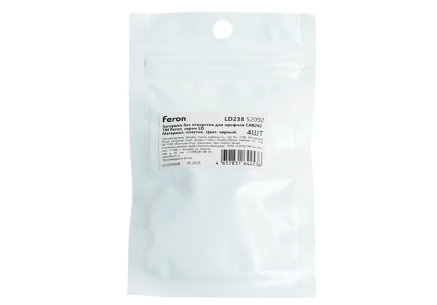 Заглушка без отверстия для профиля CAB262, LD374 (комплект 4шт) Feron LD238 52092