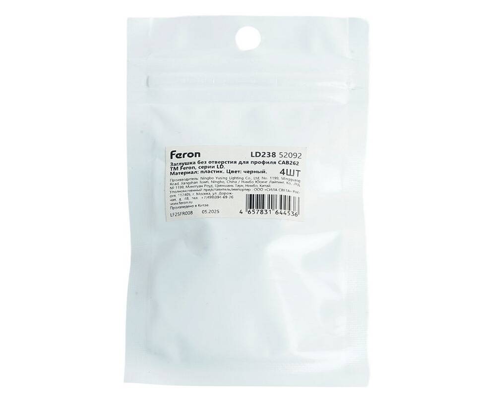 Заглушка без отверстия для профиля CAB262, LD374 (комплект 4шт) Feron LD238 52092