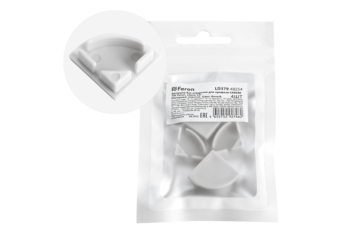 Заглушка без отверстия для профиля CAB280 (комплект 4шт) Feron LD379 48254