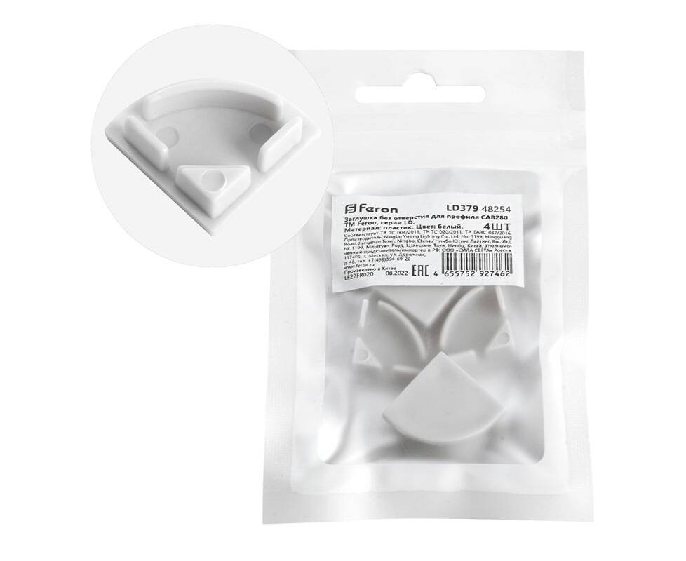 Заглушка без отверстия для профиля CAB280 (комплект 4шт) Feron LD379 48254