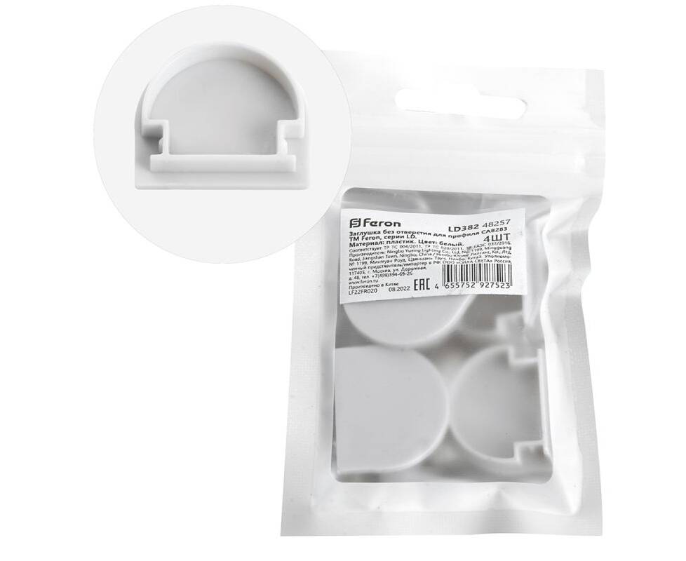 Заглушка без отверстия для профиля CAB283 (комплект 4шт) Feron LD382 48257