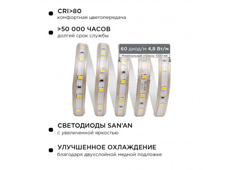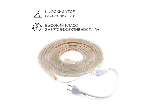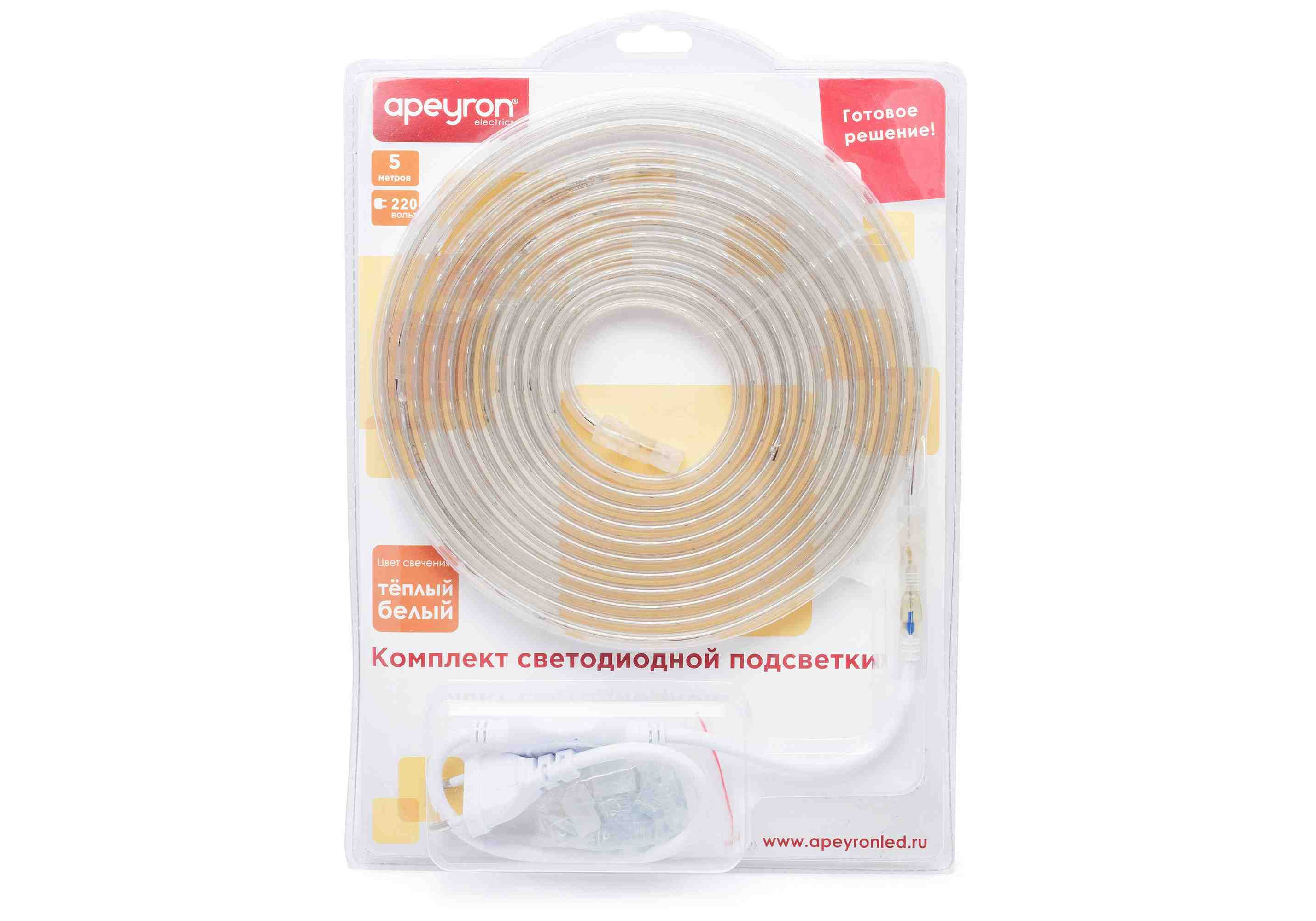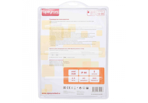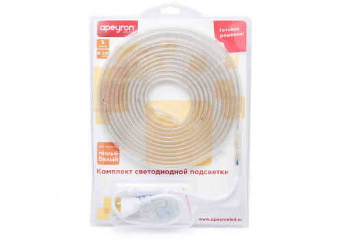 Комплект светодиодной ленты Apeyron 220В 4,8Вт/м smd3528/2835 60д/м IP65 300Лм/м 5м 3000К (сетевой ш