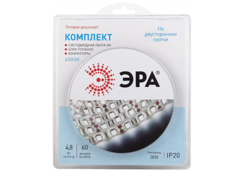 Комплект светодиодной ленты Эра 12В 2835 4,8Вт/м 6500K 5м IP20 2835kit-4,8-60-12-IP20-6500-5m Б00430