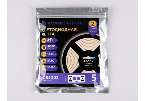 Светодиодная лента Ambrella Light Illumination 24В 5050 14,4Вт/м 3000K 5м IP20 GS4002