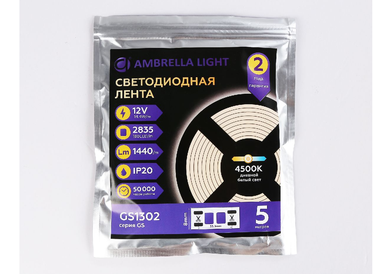 Светодиодная лента Ambrella Light LED Strip 12В 2835 14,4Вт/м 4500K 5м IP20 GS1302