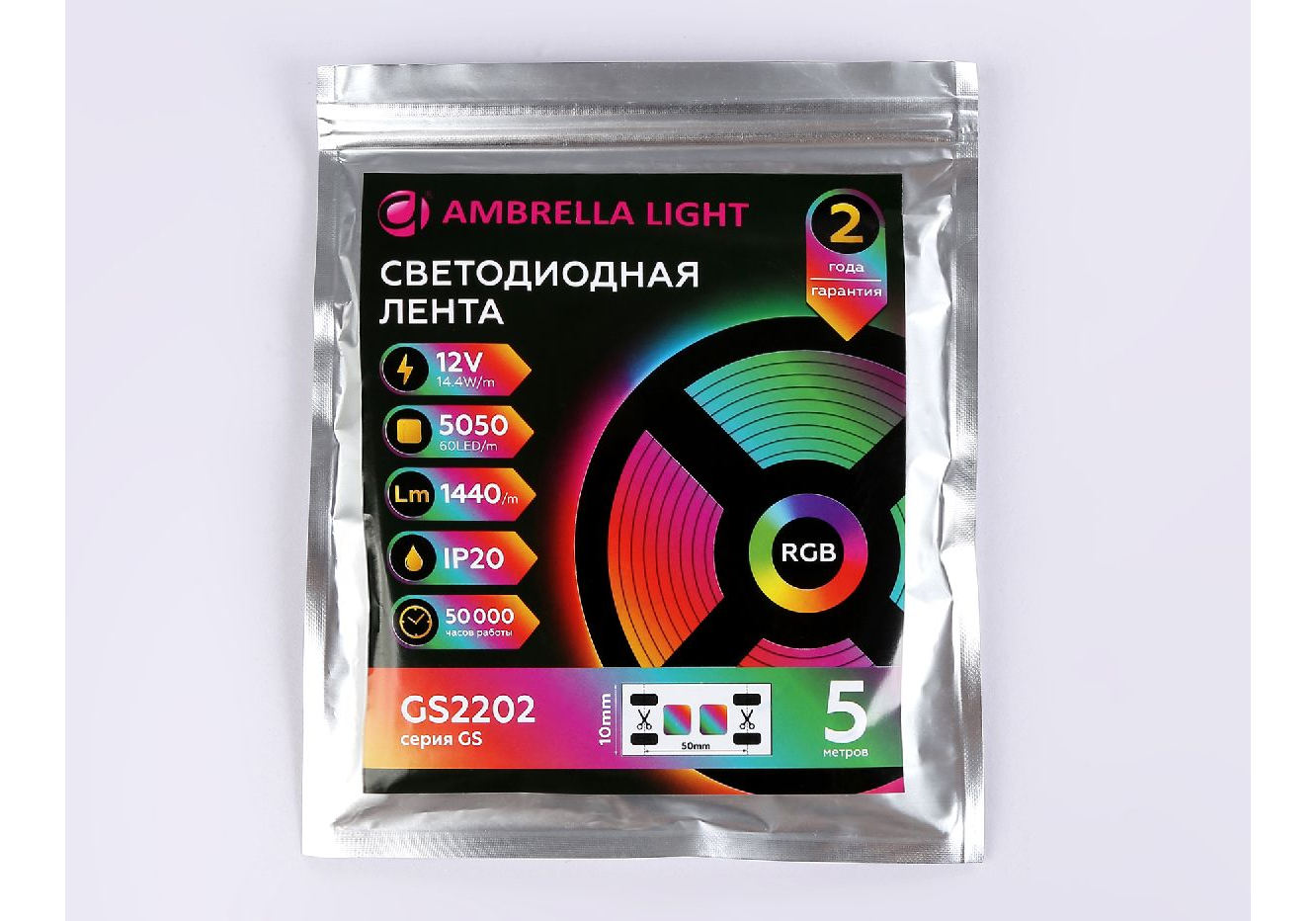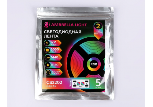 Светодиодная лента Ambrella Light LED Strip 12В 5050 14,4Вт/м RGB 5м IP20 GS2202