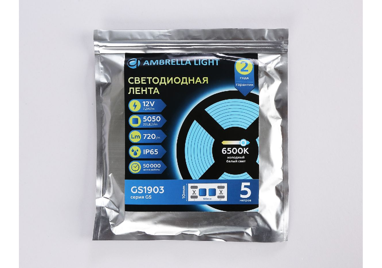 Светодиодная лента Ambrella Light LED Strip 12В 5050 7,2Вт/м 6500K 5м IP65 GS1903
