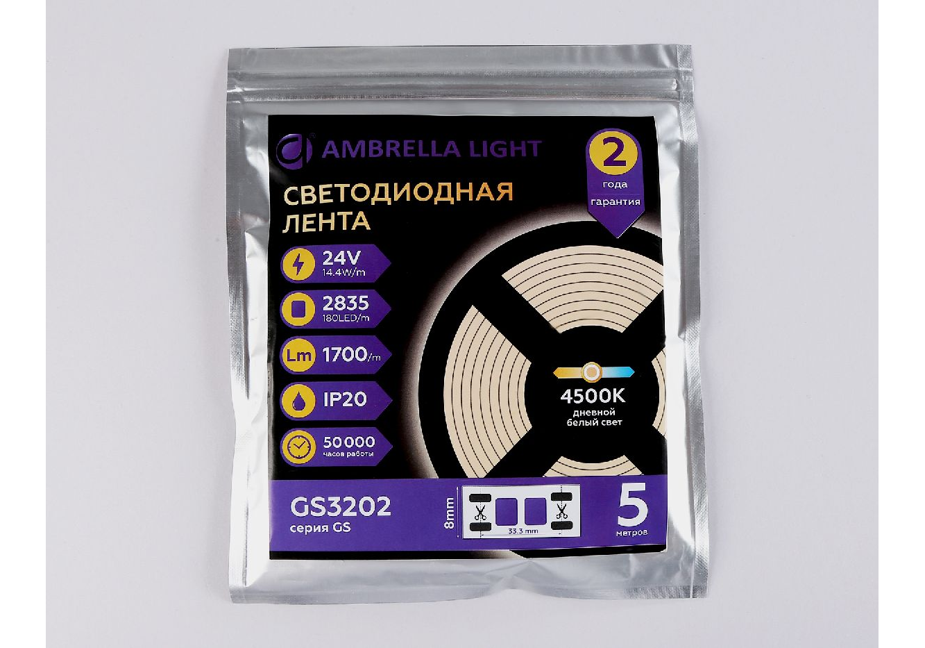 Светодиодная лента Ambrella Light LED Strip 24В 2835 14,4Вт/м 4500K 5м IP20 GS3202