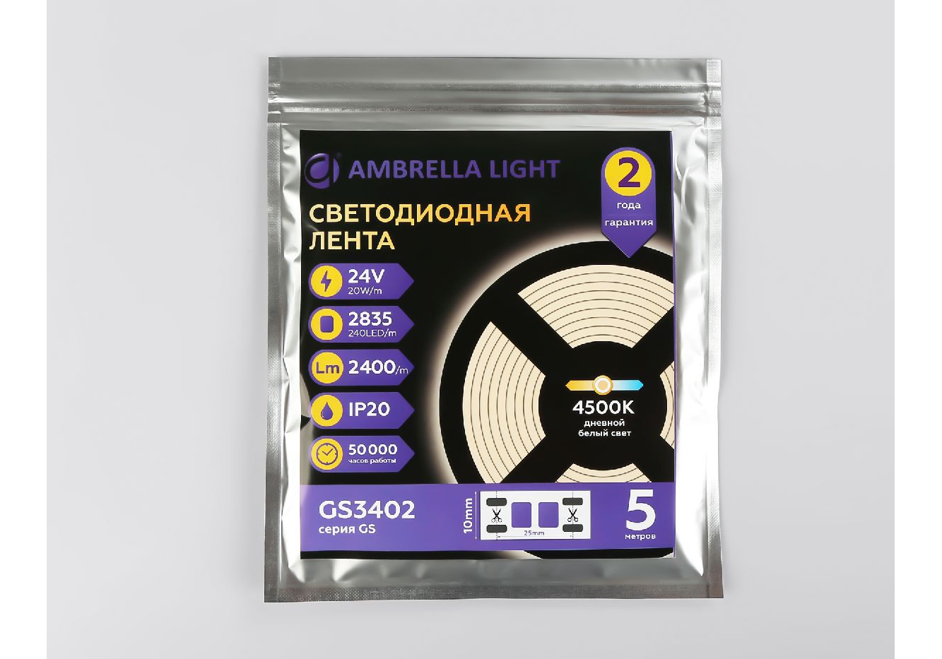 Светодиодная лента Ambrella Light LED Strip 24В 2835 20Вт/м 4500K 5м IP20 GS3402