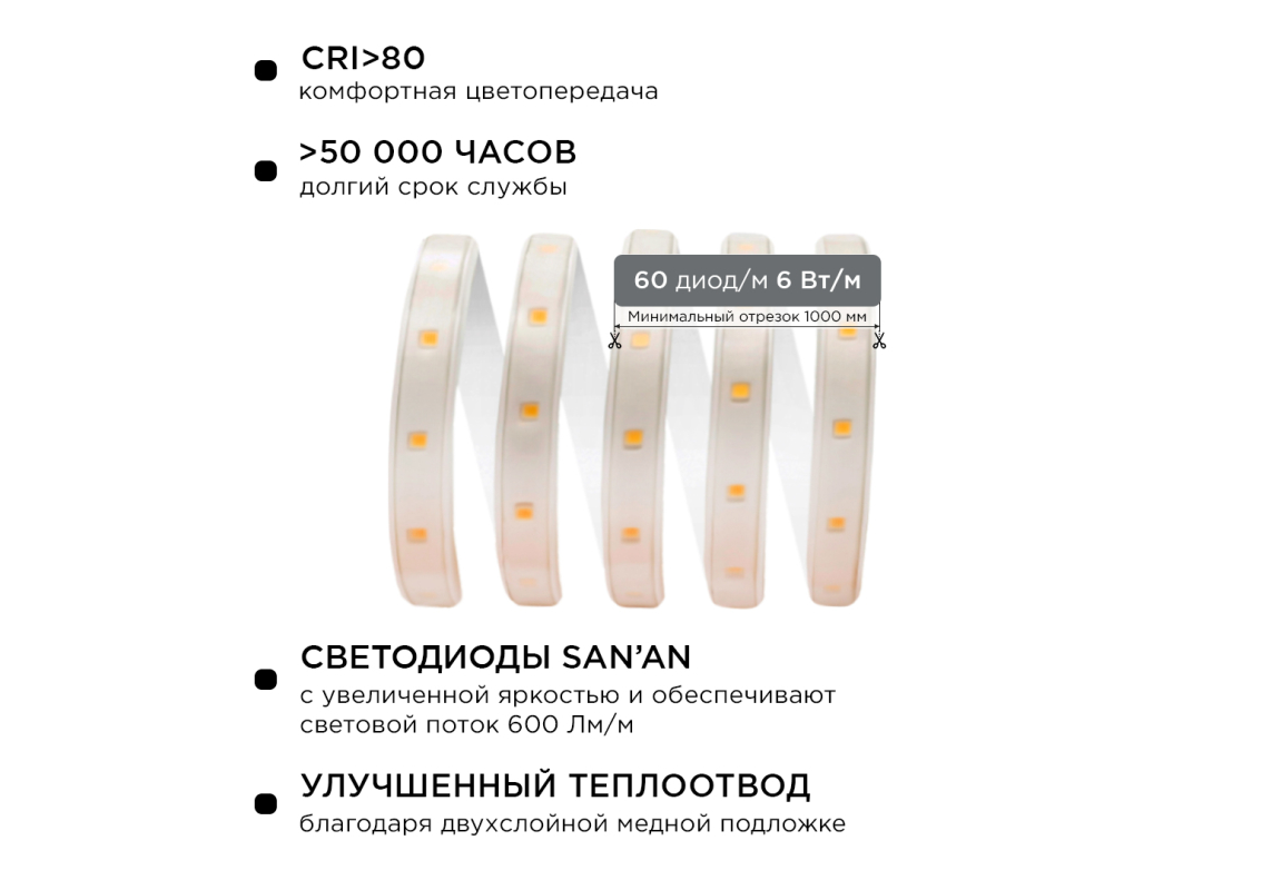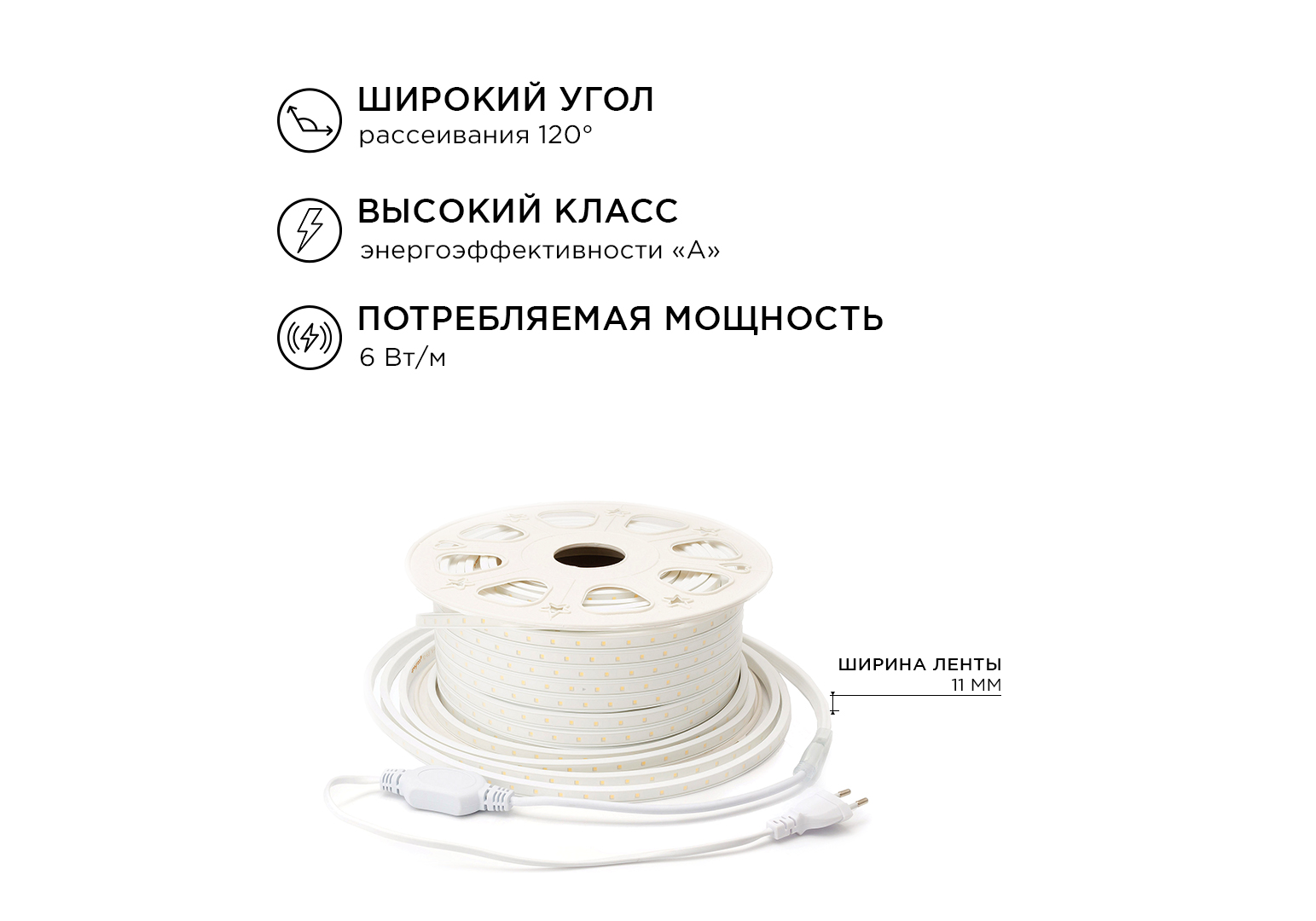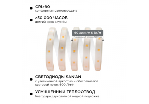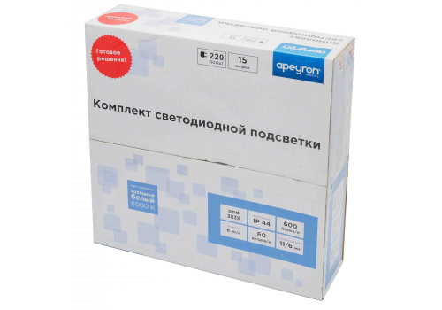 Светодиодная лента Apeyron 220В 6Вт/м smd2835 60д/м IP65 600Лм/м 15м 6500К 10-54