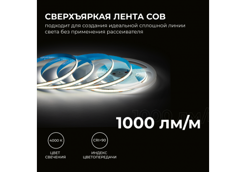 Светодиодная лента Apeyron 24В COB 12Вт/м 4000К 5м IP20 00-382
