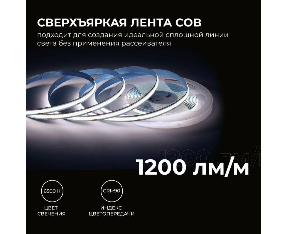 Светодиодная лента Apeyron 24В COB 15Вт/м 6500K 5м IP20 00-482