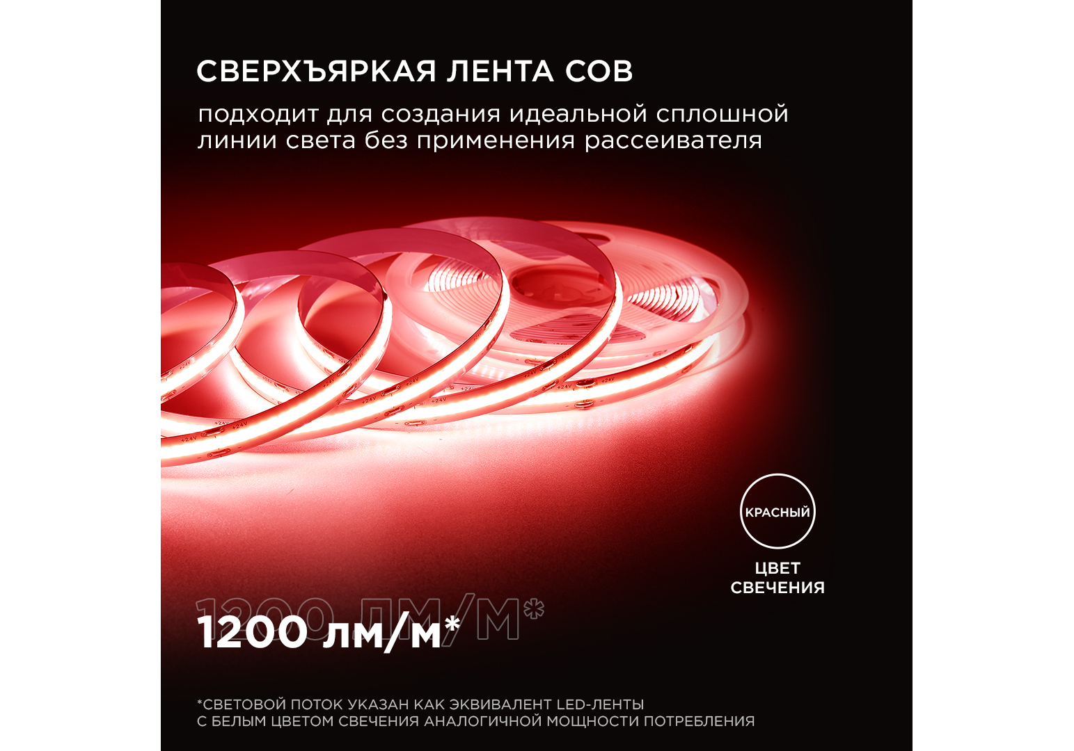 Светодиодная лента Apeyron 3м, 24В, 14Вт/м, COB, 512д/м, IP20 Красный 209ОО
