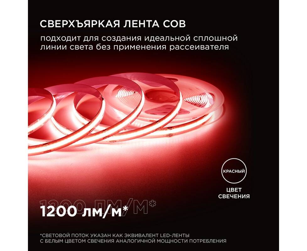 Светодиодная лента Apeyron 3м, 24В, 14Вт/м, COB, 512д/м, IP20 Красный 209ОО