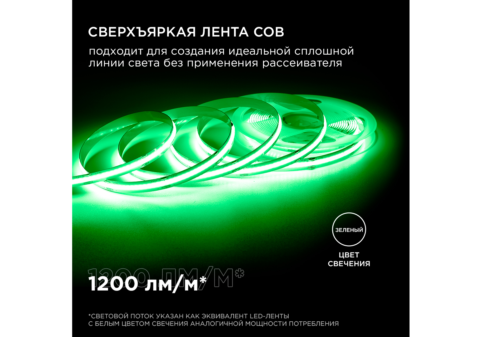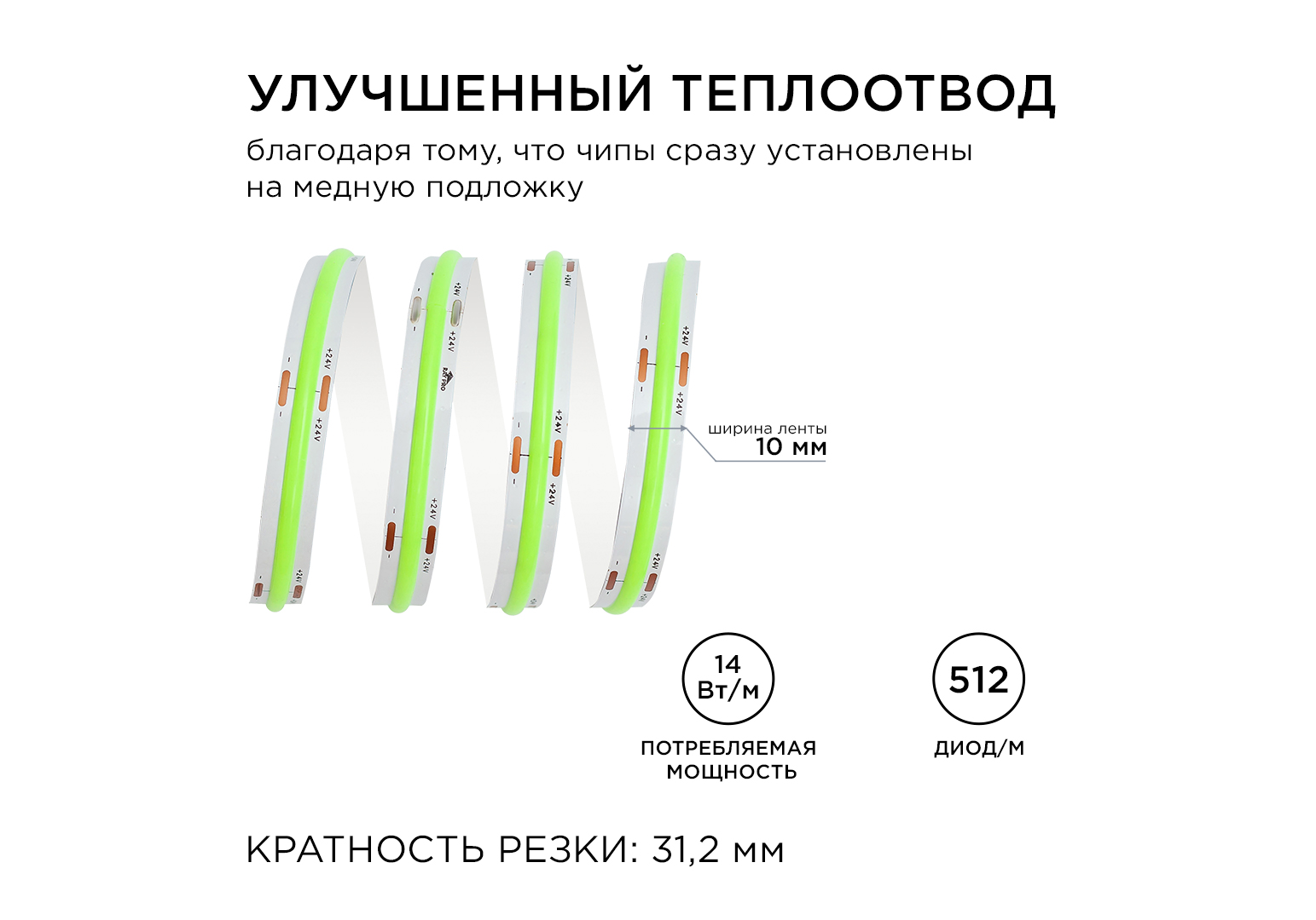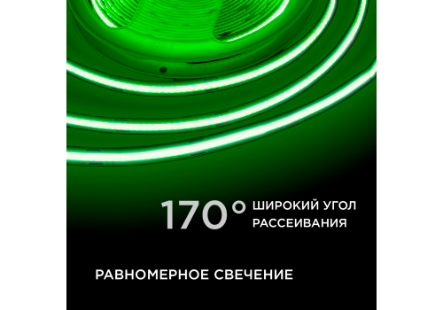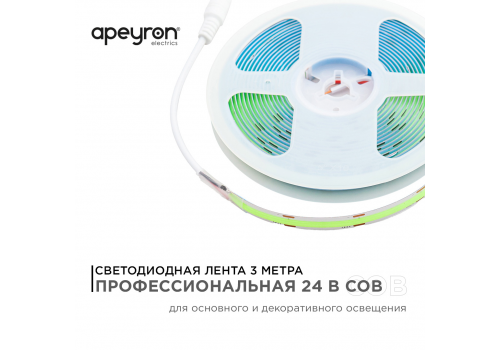 Светодиодная лента Apeyron 3м, 24В, 14Вт/м, COB, 512д/м, IP20 Зеленый 213ОО