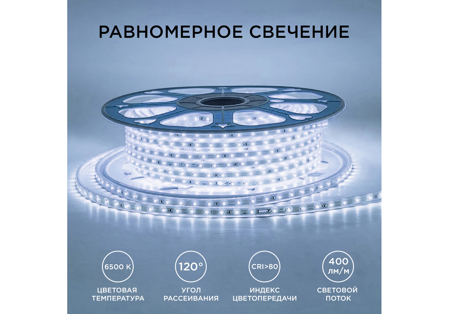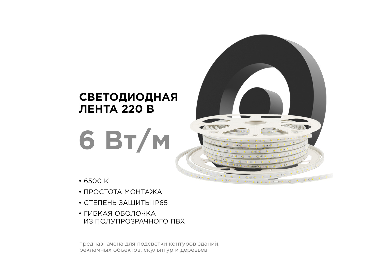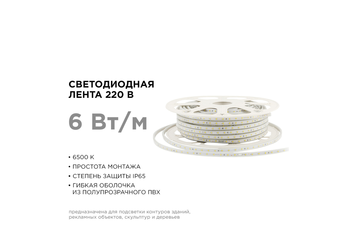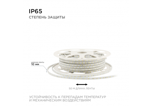 Светодиодная лента Apeyron Стандарт 220В 2835 6Вт/м 6500К 50м IP65 17-42