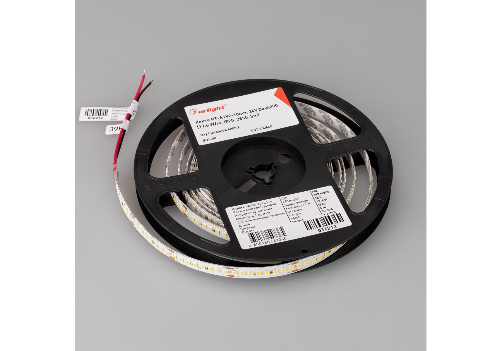 Светодиодная лента Arligh tRT-A192-10mm 24V Day4000 (17.6 W/m, IP20, 5m) (высок.эфф.150 лм/Вт) 03621