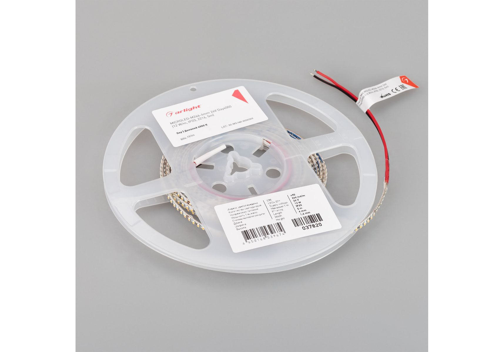 Светодиодная лента Arlight 12W/m 266LED/m 2216SMD дневной белый 5M MicroLed-M266-4mm 24V Day4000 037