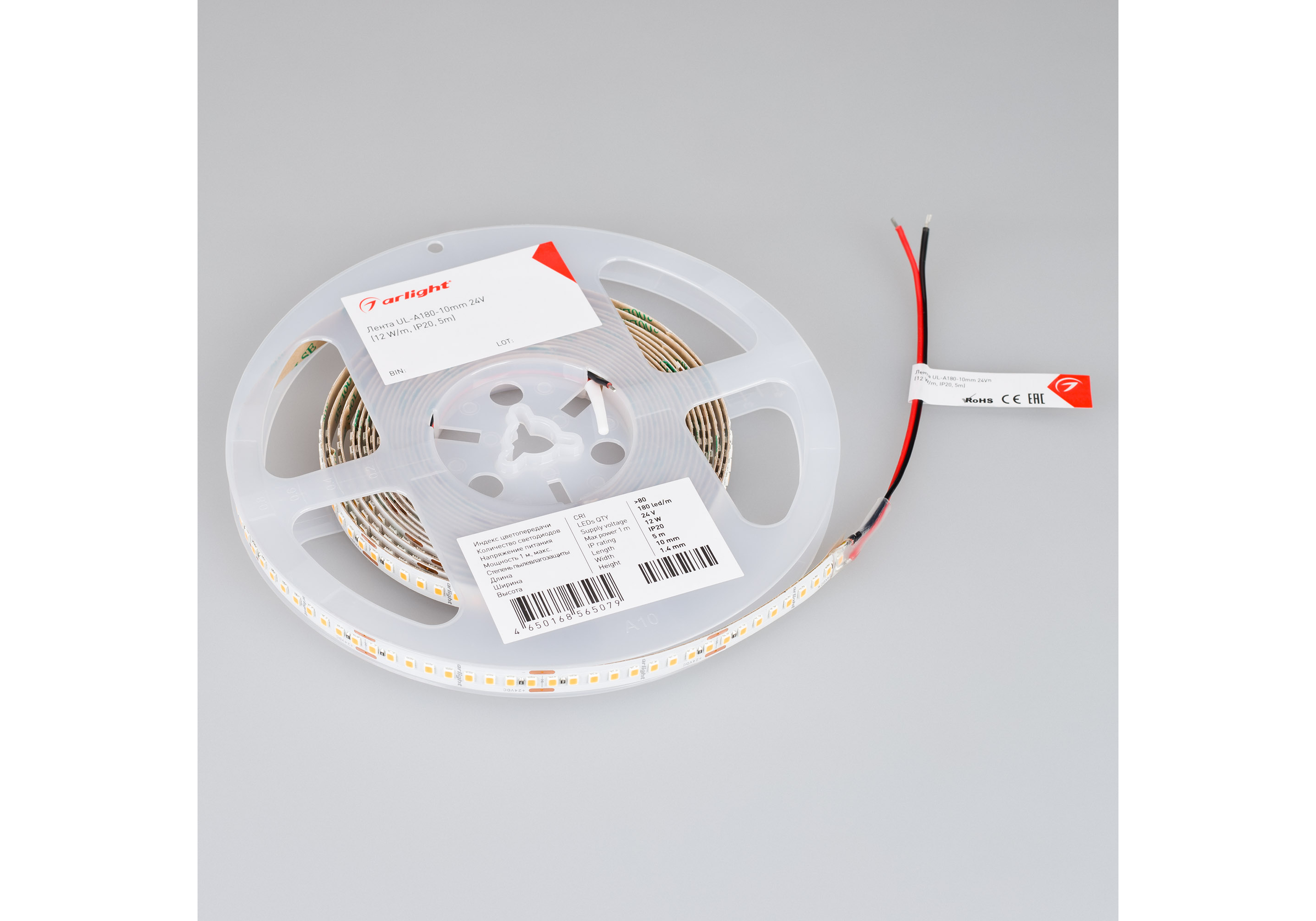 Светодиодная лента Arlight 12W/m 80Led/m 2835SMD дневной белый 5M UL-A180-10mm 24V Day5000 044512