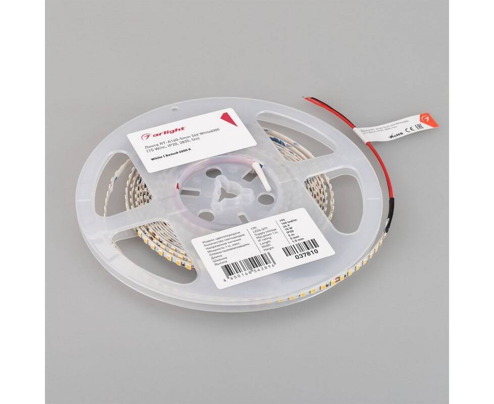 Светодиодная лента Arlight 15W/m 160LED/m 2835SMD холодный белый 5M RT-A160-5mm 24V White6000 037810