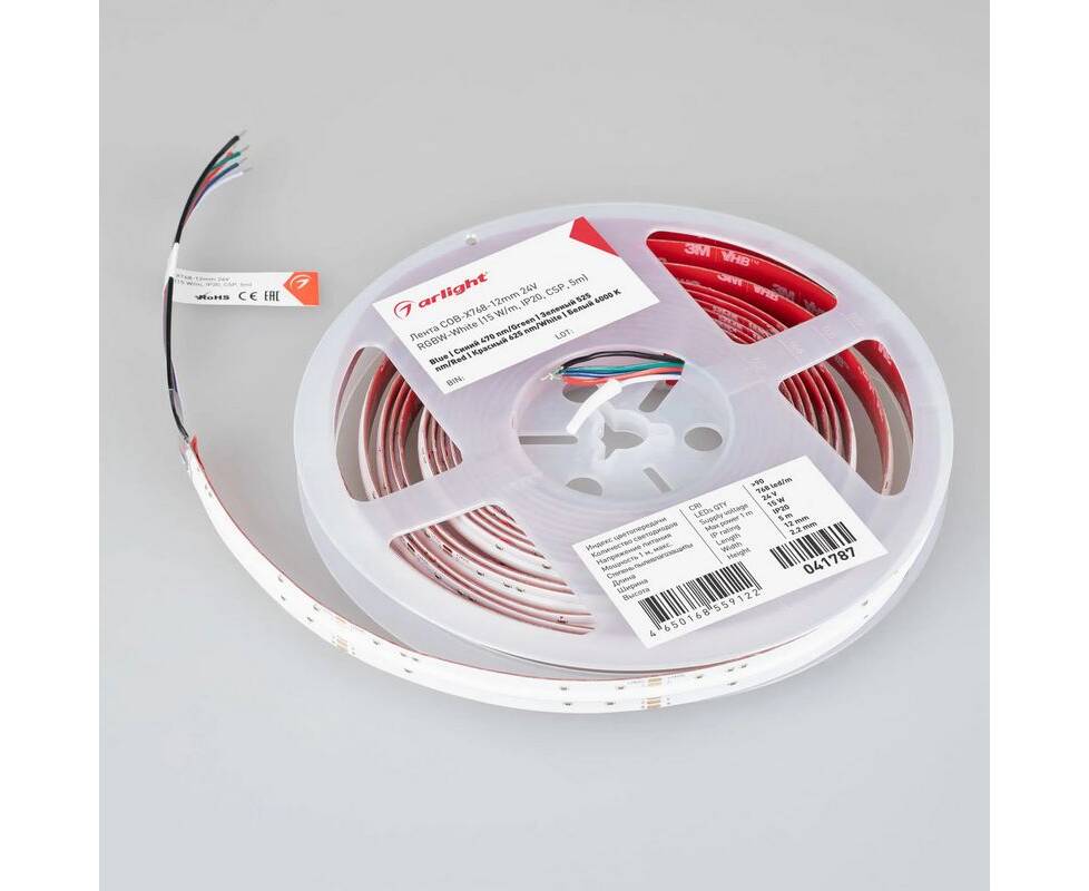 Светодиодная лента Arlight 15W/m 768LED/m CSPSMD холодный белый + разноцветный 5М COB-X768-12mm 24V