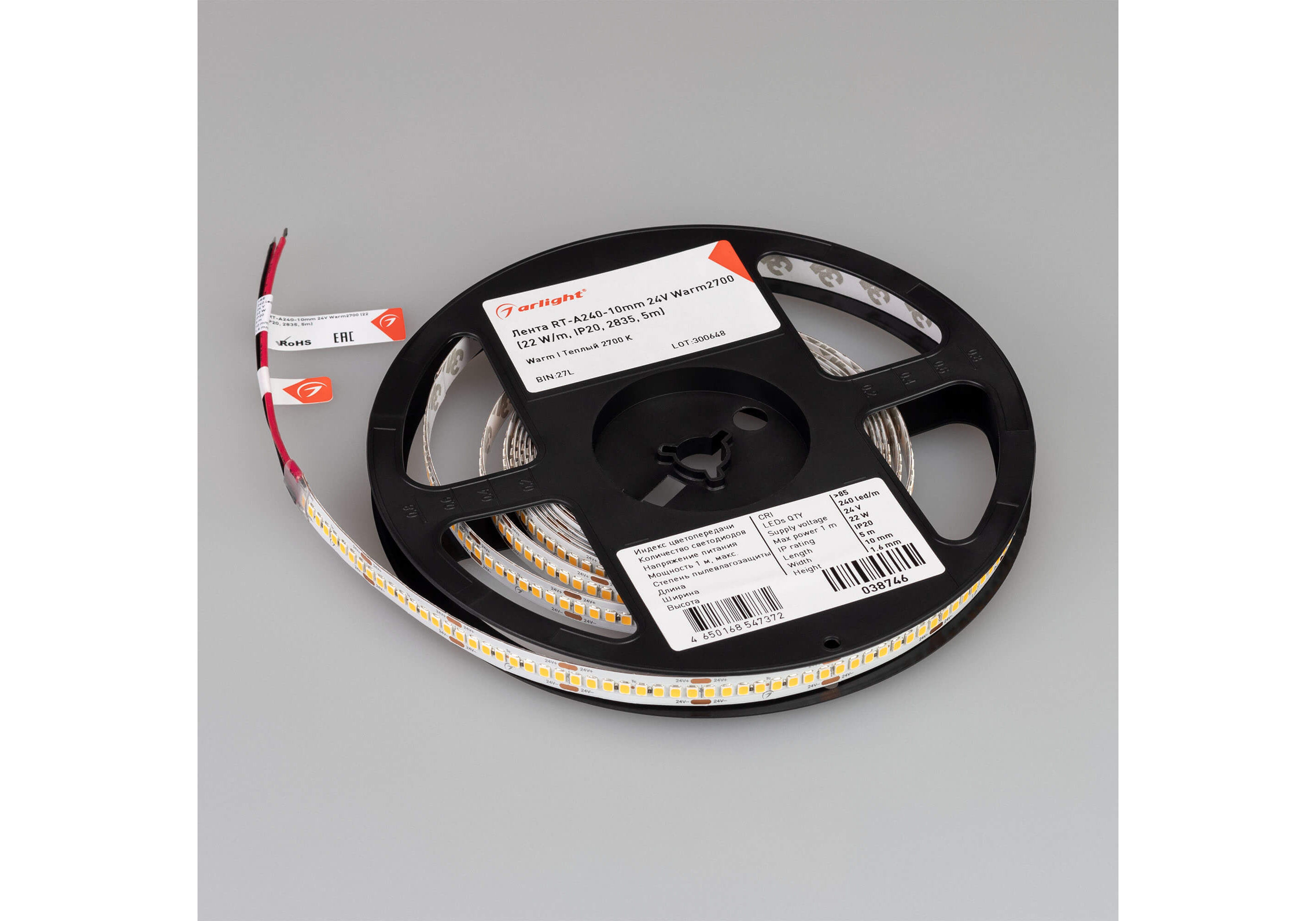 Светодиодная лента Arlight 22W/m 240LED/m 2835SMD теплый белый 5M 038746