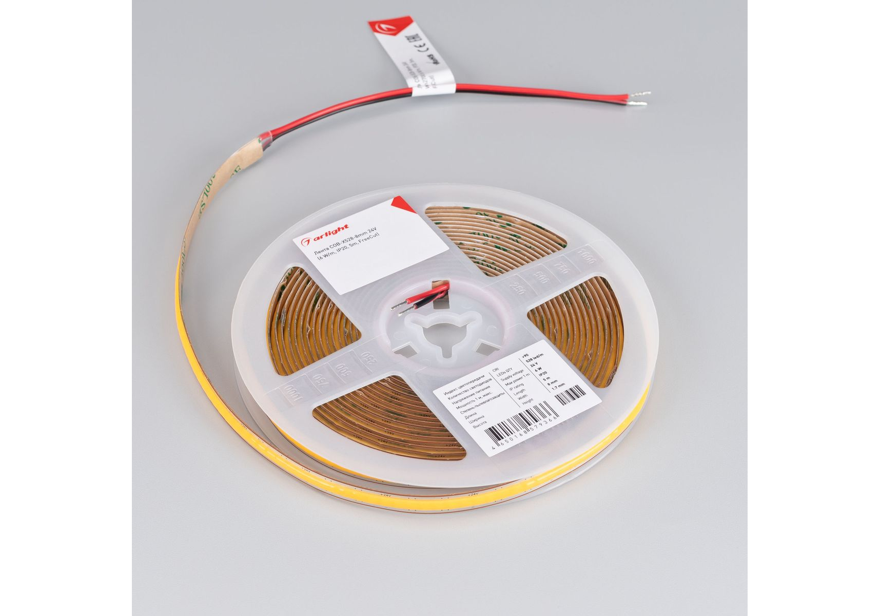 Светодиодная лента Arlight 6W/m 528Led/m CSP холодный белый 5M COB-X528-8mm 24V White6000 046885