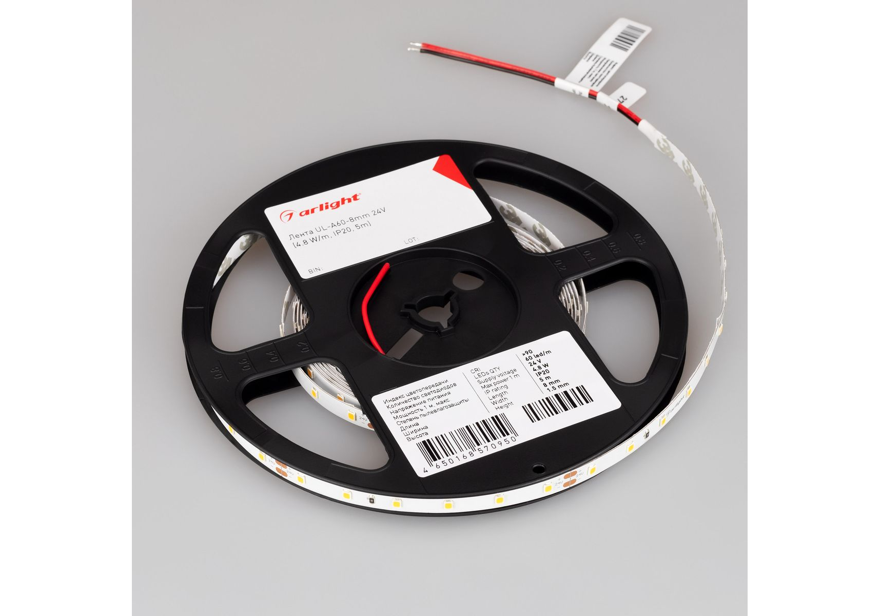 Светодиодная лента Arlight 7,2W/m 60Led/m 2835SMD теплый белый 5M UL-A60-8mm 24V Warm2700 044056