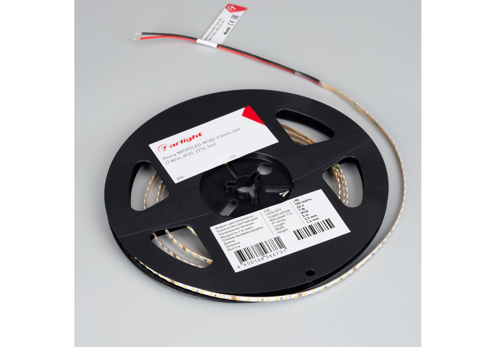 Светодиодная лента Arlight 7W/m 182Led/m 2216SMD теплый белый 5M MICROLED-M182-3.5mm 24V Warm3500 045009